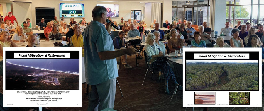 David Warth speaking at the community flood meeting held at Ocean Shores